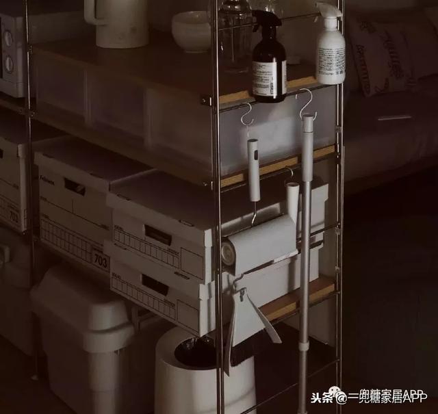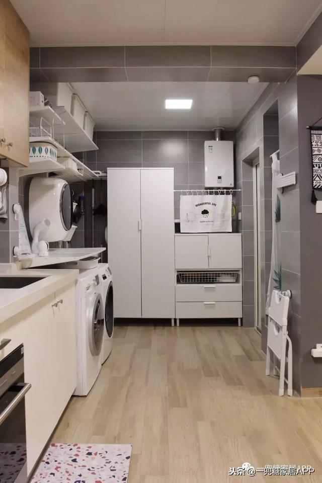▼9.洗衣房變成家務儲藏間:廚房和廁所之間的狹窄洗衣房,就是很理想的家務空間。用宜家艾格特和普拉薩組合,能夠隨意調整內部的空間,再裝一個門簾,看起來很隱蔽,又能輕鬆安放各種工具和清潔劑。