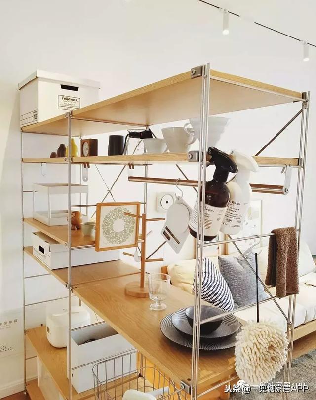 ▼6.將小物掛在MUJI置物架上:MUJI置物架是最強的家居收納工具,在桿上加個S鉤,不僅看起來時尚漂亮,只能開放式儲物,讓家裡充滿生活氣息。