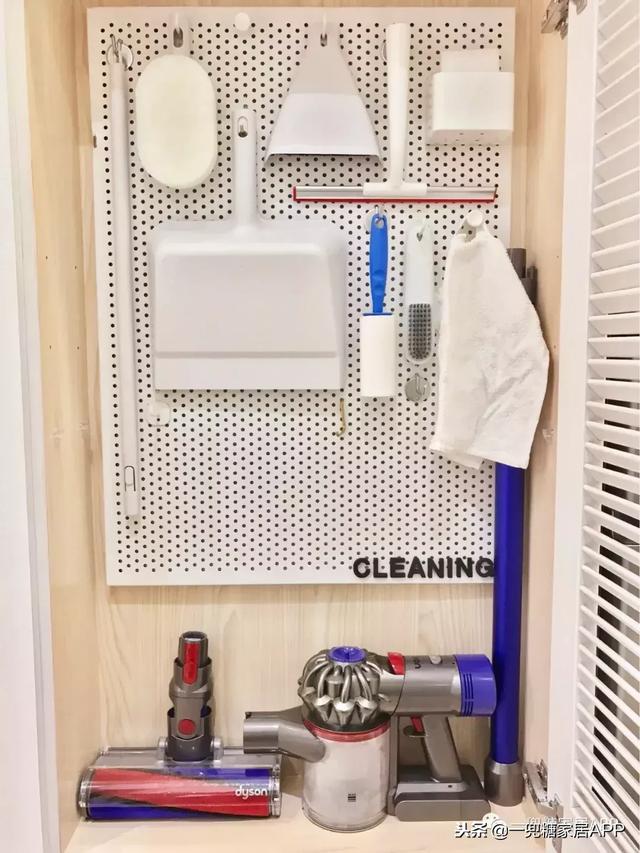 ▼4.三節伸縮軌道:在櫃子內裝上伸縮軌道,搭配洞洞板使用效果更佳。可以直接拉出來取放清潔工具。