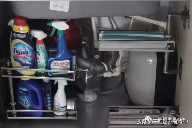 ▼廚房水槽櫃下方也能用來放清潔用品,當成家務空間補充收納,或者單獨存放廚房清潔用品都沒問題。