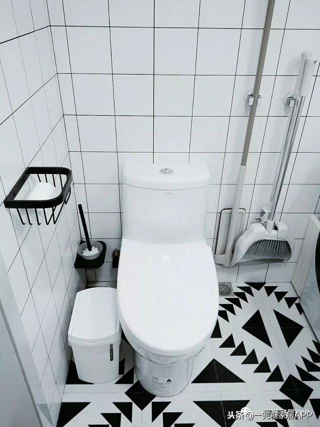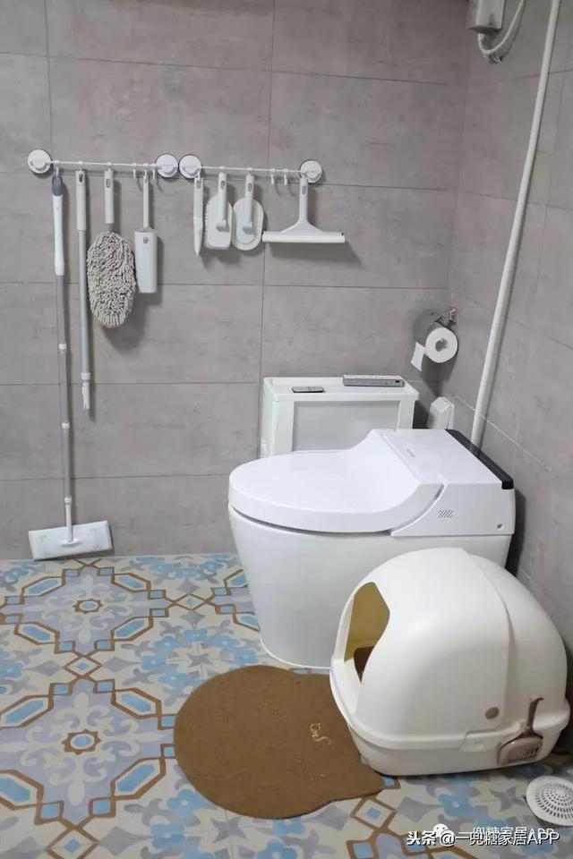 ▼10.免釘上牆,靠近重點清潔區收納:把廁所的邊邊角角利用起來,就能收納清潔用品。這位屋主就在馬桶與洗衣機中間的牆壁上裝免釘掛鉤,用來放濕水掃帚拖把。