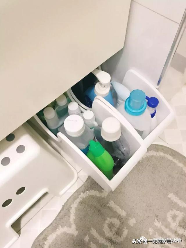 ▼洗衣機旁的縫隙放上夾縫櫃,用來收納洗滌用品。