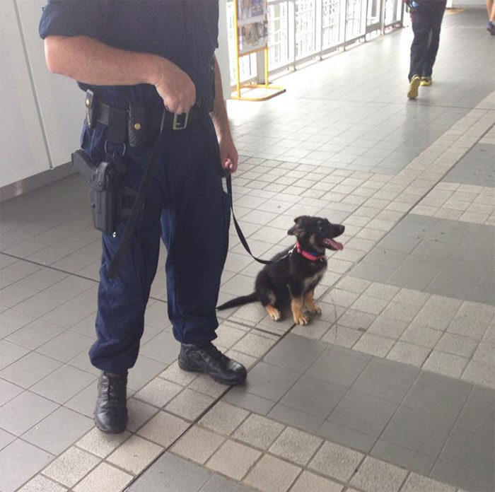 靠萌力克敵制勝! 30隻「威風警犬童年萌照」 菜鳥出任務「裝進口袋裡」陪執勤