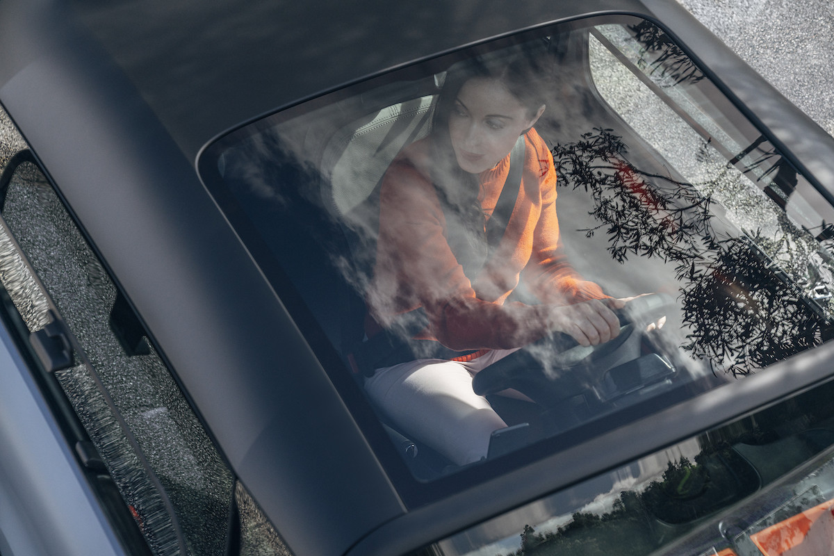 ▼這輛車採用雙人座設計,內部空間很緊湊,採用大面積玻璃設計,車頂的全景天窗尺寸佔據整個面積的一半,再加上擋風玻璃、車窗,視野非常廣闊,也讓室內空間顯得比實際要寬敞。