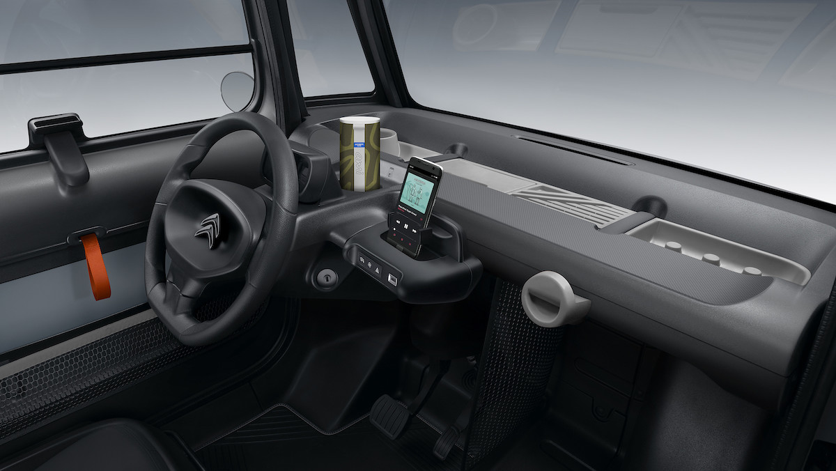 ▼這款純電動力車的最高速限在45km/h,最大續航力70公里。充電線收納在車門中,透過220V插座,只要3個小時就能充電完成。作為輕型4輪純電車,按照法國法律,雪鐵龍Ami不需要駕照,只要年滿14歲都能駕駛,很適合拿來當通勤工具。