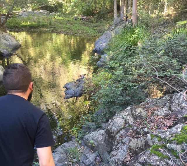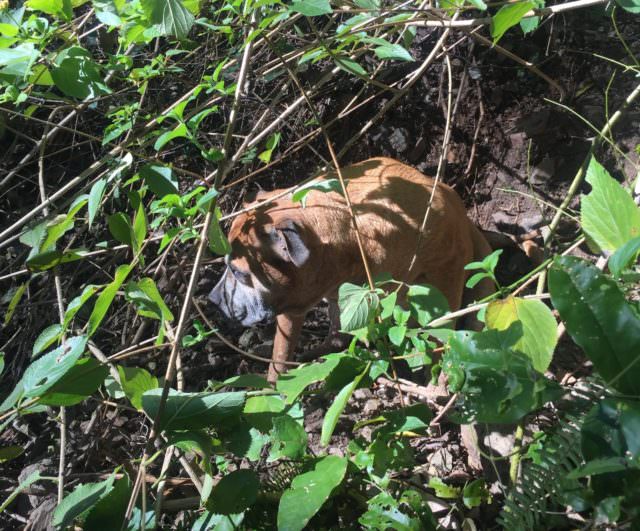 ▼他們給這隻狗狗取名為Piggy Miss,Piggy Miss也漸漸跟3人熟悉起來。但牠不知道在野外流浪了多久,根本沒力氣攀登陡峭的山坡。