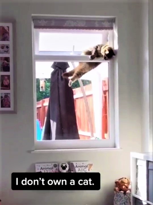 2020年09月03日明明不是自家的貓,為什麼要爬進自家的窗戶?有一天國外女網友@jayee1992遇到了一位不速之客,只見一隻陌生的虎斑貓攀在她家的窗戶上,正努力想要闖進來。她覺得這一幕很有趣,將整個過程都拍下來。胖貓努力爬窗的模樣讓網友們笑翻了!