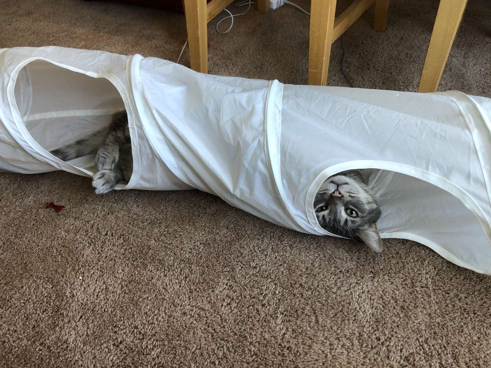 ▼平時Carly喜歡玩貓隧道,有一次牠在雜貨店發現一盒洋溢著香甜味道的草莓,一下子就喜歡上了。從那之後,只要主人買草莓回家,牠就會趴在裝有草莓的盒子旁呼呼大睡。