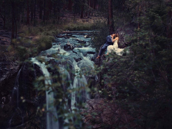 ▼舉辦婚禮後的第二天,James和Chelsie來到山林中拍攝婚紗照。他們在婚禮上跟家人拍了合照,這一天則是拍攝只屬於兩個人的浪漫照片。