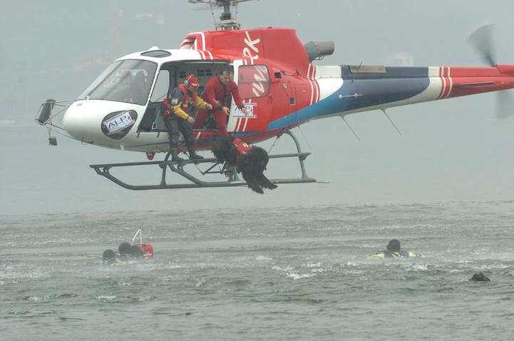 ▼大概30年前,Ferruccio Pilenga在米蘭創立了一間救生犬學校。救生犬要學會從直升機或快艇上跳入水中、拖著漂浮物到落水者身邊、將落水者拖上岸等技能,每一隻救生犬要受訓3年才能達到專業的水平。