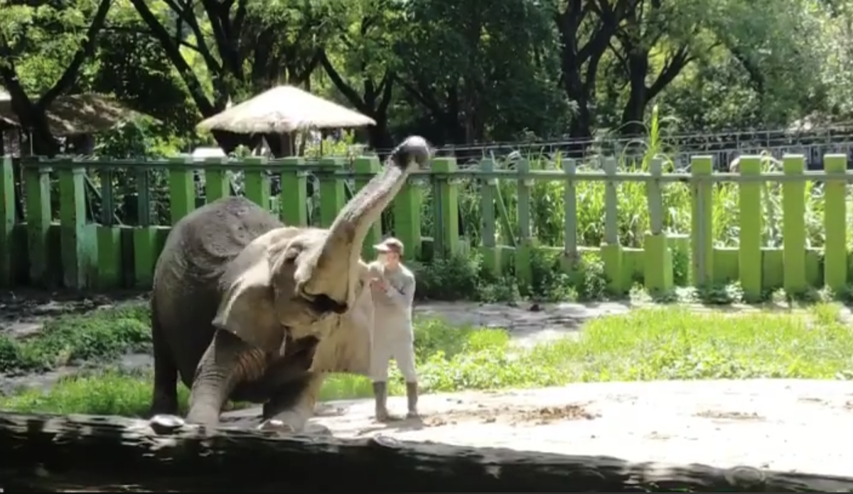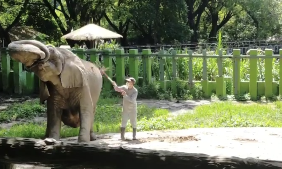 2020年09月03日大象是情感豐富的動物,以擁有超強記憶力著稱。高雄市壽山動物園裡的這隻46歲非洲象「阿里」,在8月30日就罕見露出興奮開心的反應,因為照顧牠40年的「把拔」回來看牠了!前保育員張永興在2019年中退休,阿里見到情同把拔的張永興突然出現,開心的搖頭、捲鼻子、甩尾,還不停的仰頭撒嬌,而這段短片也感動了上萬網友。