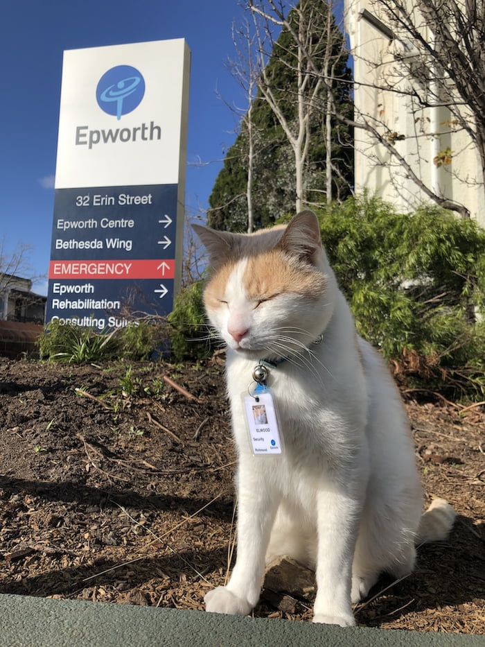 2020年09月07日澳洲墨爾本的這間醫院Epworth Hospital,雇用了一名特別的保全人員,這位保全人員可以隨心所欲的四處晃,只要在門口站崗就可以融化一票同事,也可以想到就到草坪上溜躂曬曬太陽,究竟是什麼樣的員工可以擁有這樣的魅力,還有這麼自由的條件呢?原來牠是一隻貓咪呀~