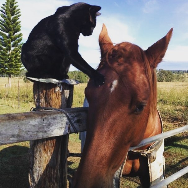2020年09月04日跨越物種的友誼非常奇妙。澳洲女子Jennifer Boyle經營著一間牧場,6年前,她從一間動物收容所領養了一隻小貓。Jennifer將貓咪帶回家後,貓咪竟然與牧場中的小馬成為了好朋友。牠們每天一起休息、一起看風景,貓咪趴在馬背上的畫面超溫馨。