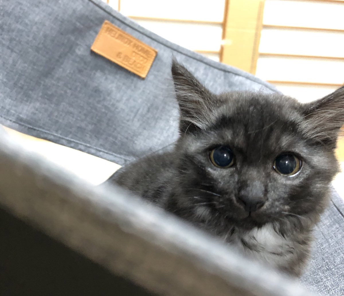 2020年09月10日一位日本網友分享自己從水溝裡救出的灰黑色小貓喵,收編了之後經過了一段時間,貓咪的前後對比照讓人感到相當驚艷,原本渾身濕搭搭黑乎乎,僅有3、4根手指寬長的小小身軀,已經出落成英姿煥發的活潑貓咪,有著一身蓬鬆勃發的灰黑毛色,頭稍稍往一邊歪的樣子十分可愛又端莊,讓人驚訝這前後的差別。