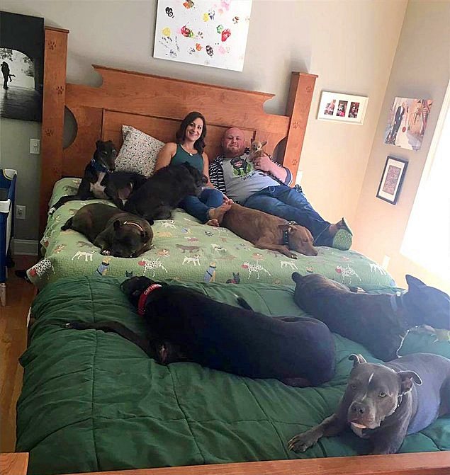 2020年09月11日早就有研究發現,和狗狗同眠有利於睡眠~紐約夫妻Chris和Mariesa Hughes養了8隻狗狗,他們把狗狗當成家人來對待,每天晚上狗狗們都會跳上床,和牠們一起睡。但他們也有一個煩惱,那就是床上一次擠8隻狗狗,真的太擁擠了!