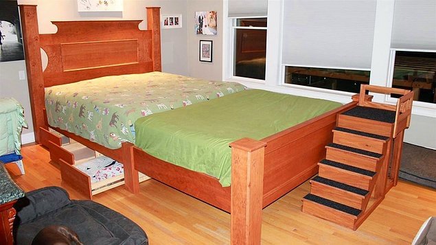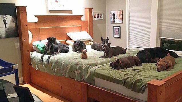這張大床是Chris和Mariesa對狗狗的滿滿心意,他們願意為狗狗做這麼多事,是因為真的把狗狗們當成家人來看待。只有真正愛寵物的人才能體會他們的愛吧~