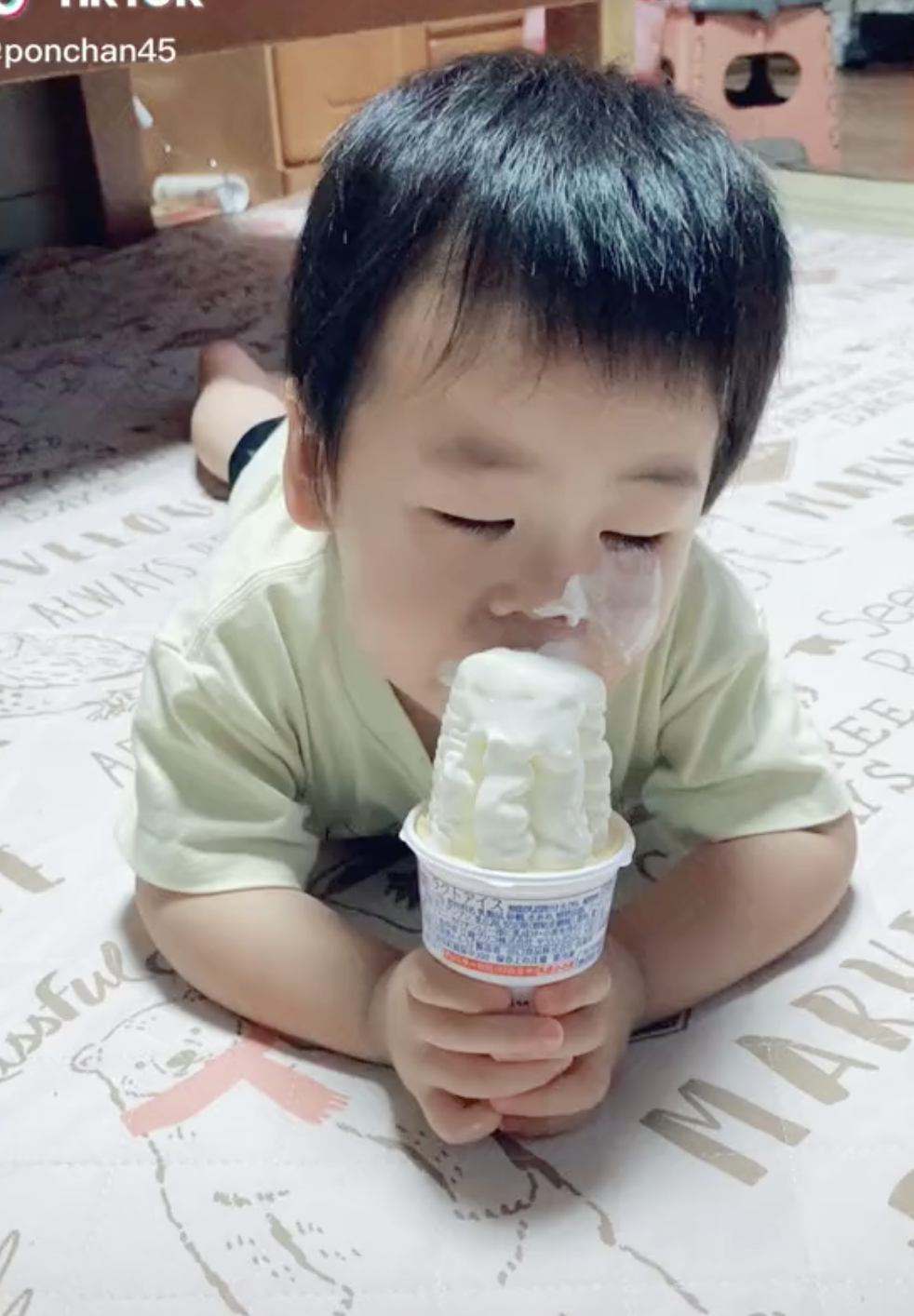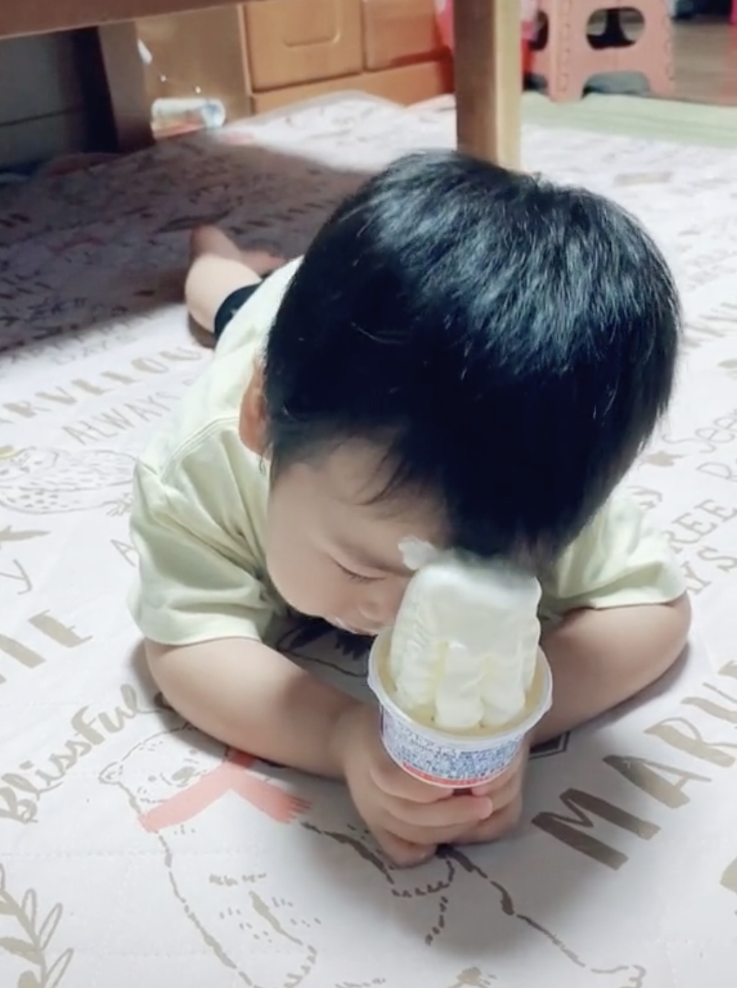 睡著也要吃! 北鼻太愛霜淇淋「邊吃邊度菇」 媽崩潰笑出聲:是在擦護膚乳?