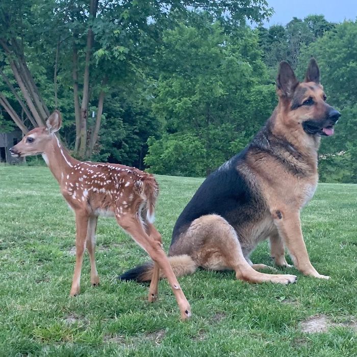 收養孤兒小鹿!頑皮德牧竟變「溫柔保鑣」 舉動超呵護:這隻我罩的~