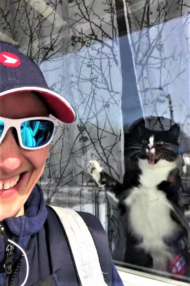 ▼Debra笑說:「牠覺得我是入侵者,我確信,如果我們之間沒有隔著玻璃,牠一定會把我做掉!」每次Debra來送信,貓咪都會兇牠,如果沒有窗戶玻璃隔著,貓咪恐怕會抓花Debra的臉。