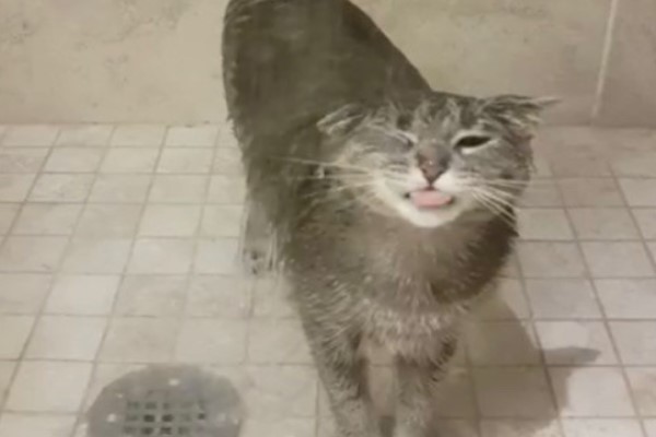 SPA捏~ 萌貓最愛沖澡「滿臉享受」 網笑:是來順便喝水?