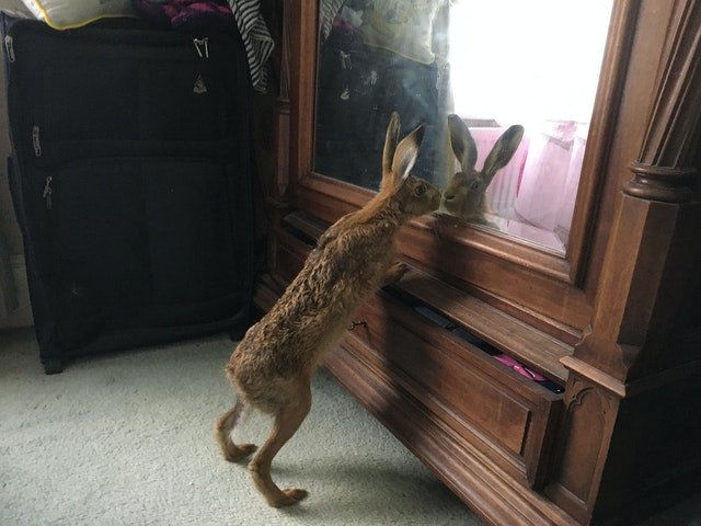 ▼Natasha介紹說:「牠就直接從後門走進家裡,然後自己上樓進我們房間,站在衣櫃的鏡子前。牠好像在看自己又長高了多少,這真的太不可思議了!」