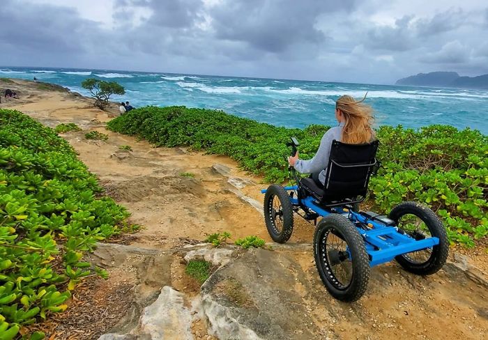▼Zack給這款輪椅取名為「Not-a-Wheelchair(不是一輛輪椅)」。他表示,市面上的越野輪椅要嘛價格太貴,要嘛跑得太慢,相對來說他設計的這款輪椅CP值非常高。