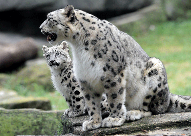 豹生第一次亮相!3個月小雪豹「躲媽媽身旁」見客 蹙眉臉網高呼:這就貓貓啊♡