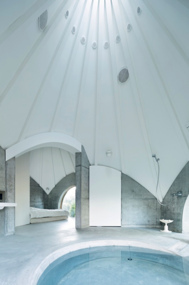 ▼小屋的外觀很漂亮,內部的設計也很貼心,比如這間小屋內就有特別造型的螺旋泳池,方便坐輪椅的老人使用。