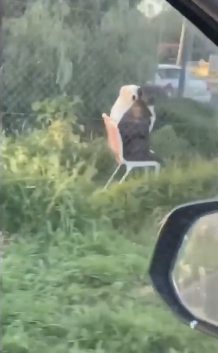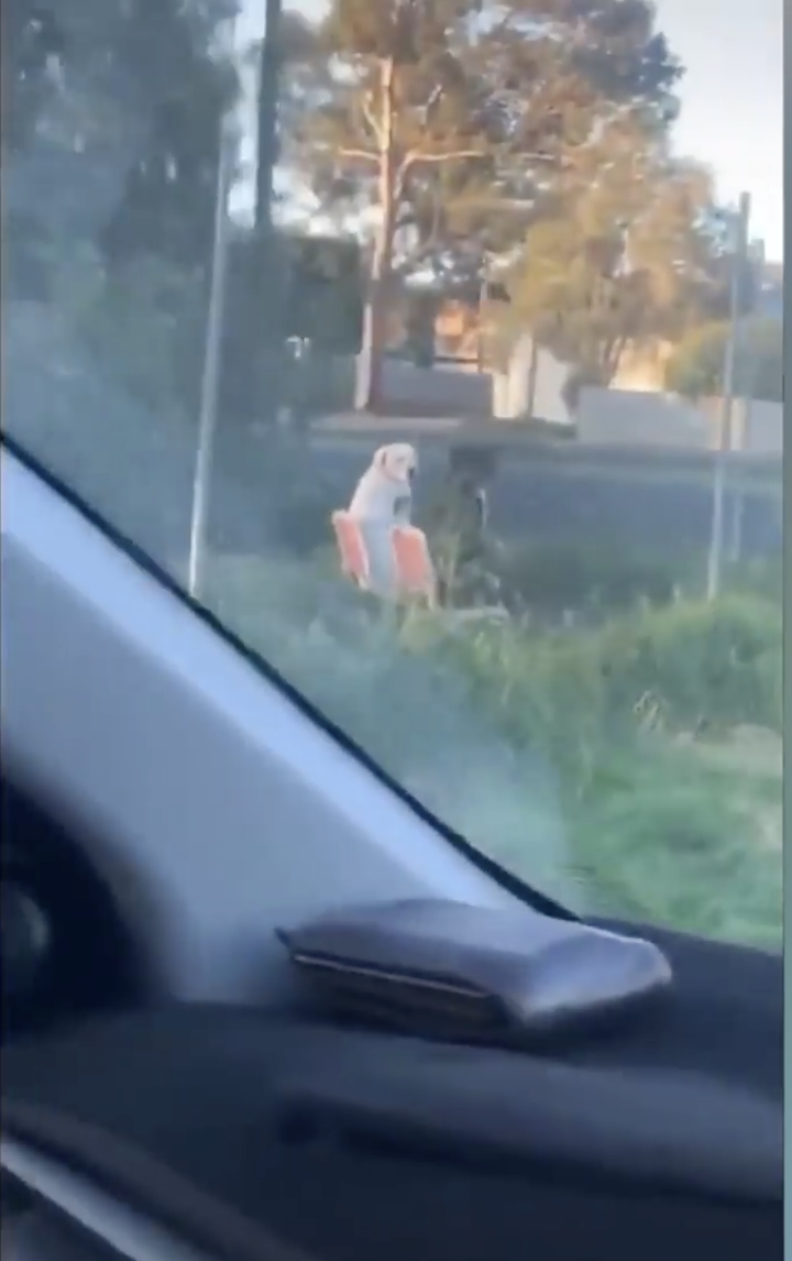 2020年09月17日一位澳洲男子看到讓他驚訝的一幕,當他駕著車行經一處草坪處時,發現草坪上立著的兩張椅子上,坐著兩條狗狗,從背後遠遠望去,就像是有兩個人坐在椅子上,這景象讓男子相當好奇,經過時忍不住自言自語的問起狗狗:「你們為什麼要坐在這裡?」