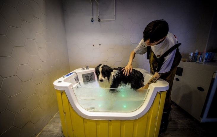 ▼周天曉非常感謝Sylar的陪伴,也很感謝牠改變自己的人生,於是花50萬美元在北京為Sylar建造了一座狗狗天堂。那座豪宅中有空調、溫水泳池、柔軟舒服的大床、水療SPA和寬敞的草地,Sylar可以盡情享受生活。