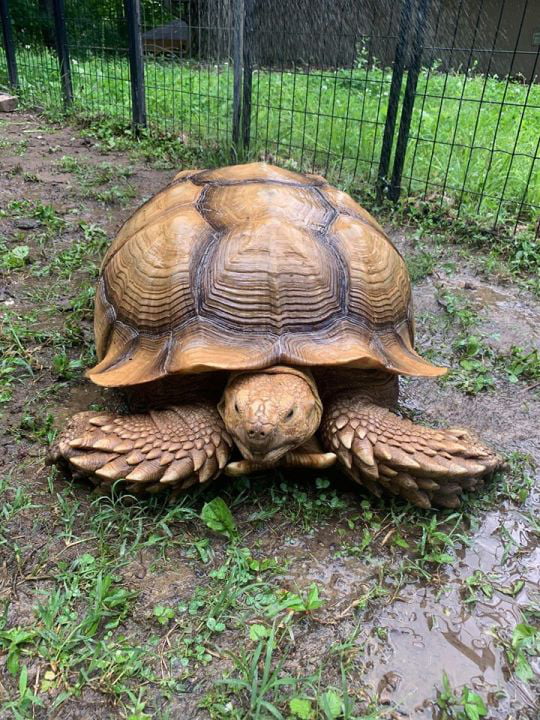 ▼今年6月8日,Solomon瞞著主人偷偷跑出家門。這隻68公斤的蘇卡達象龜就這樣消失不見,展開了一場為期74天的流浪冒險。直到8月21日,一對父子才聯絡到Solomon的主人將牠送回家,主人這才知道牠根本沒有跑遠。