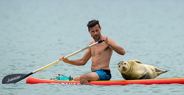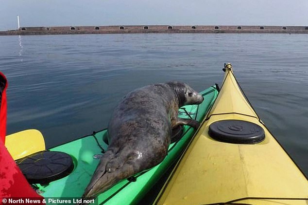 ▼之前英國多塞特海灘也發生過類似的事,一名男遊客划船時,小海豹也跳上船搭便車。這隻叫Sammy的小海豹還露出肥嫩的肚肚,看起來很可愛。