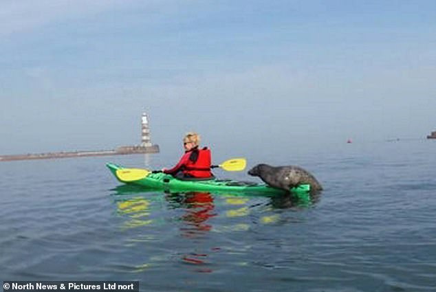 ▼這對夫妻是Denise和Adam Walter,那天他們在桑德蘭海岸的洛克港划橡皮艇,準備回程時突然遇到了一隻小海豹。牠跳上船休息,讓人非常驚喜。Denise說:「我覺得橡皮艇後方被大力拍了一下,轉身就看到牠爬了上來。」