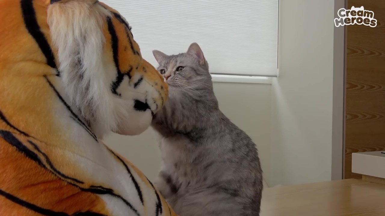 2020年09月25日貓咪平時非常高冷,如果牠們遇到大貓,會有什麼反應?韓國YouTube頻道「CreamHeroes」經常拍攝貓咪的可愛日常,最近女主人準備了一個很逼真的老虎大玩偶,想看看貓咪們的反應。結果家中7隻貓咪的反應超可愛!