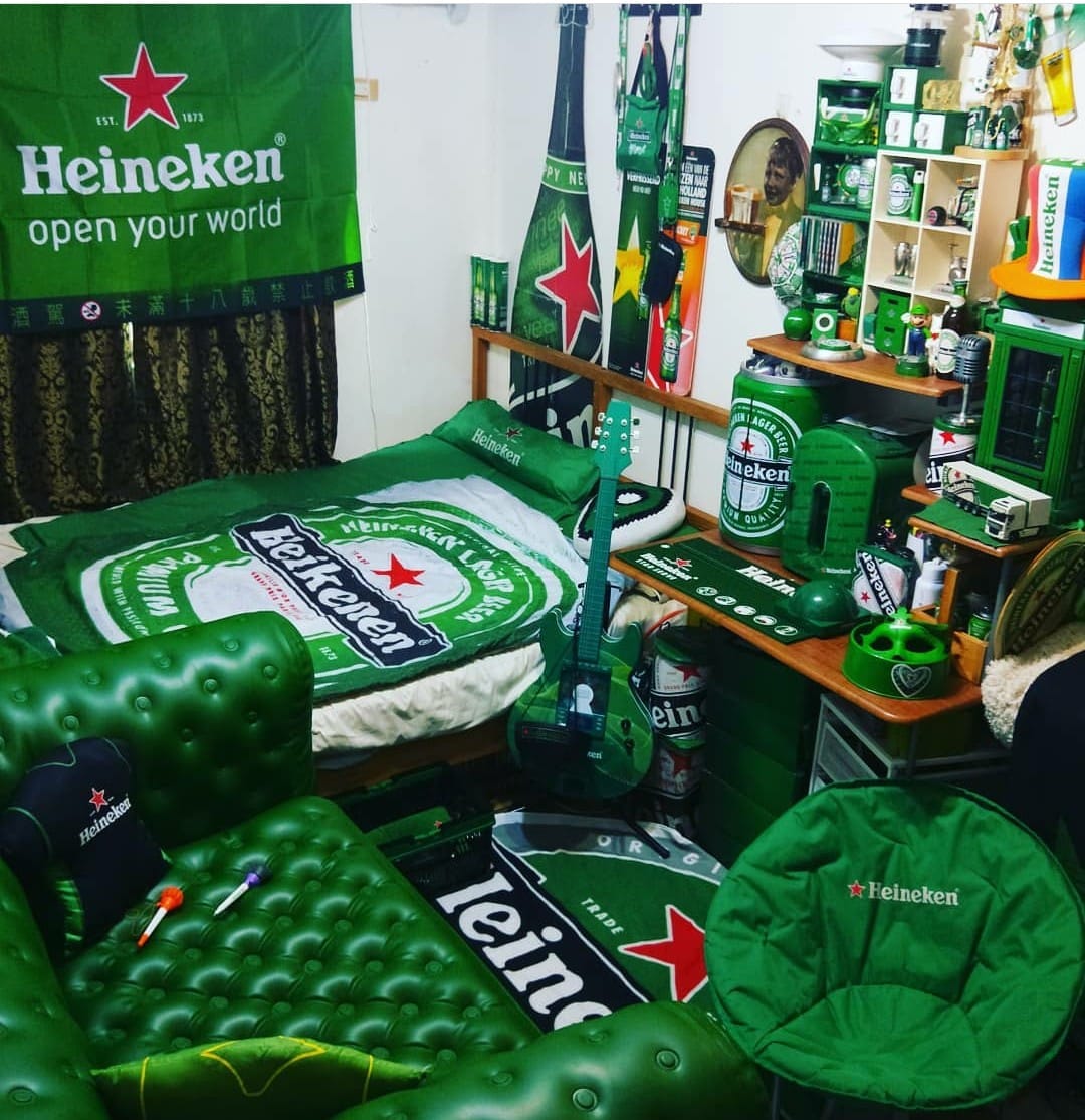 2020年09月24日這個世界上不僅有愛喝酒的人,還有愛收藏酒,甚至收藏相關周邊商品的人~最近一名女網友在臉書社團「爆廢公社二館」分享了自己的收藏,只見她的整個房間都是「海尼根」品牌主題,豐富的周邊讓人看得目瞪口呆。