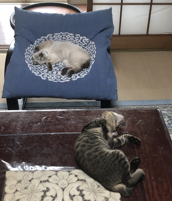 ▼貓咪很喜歡家裡的和室客廳,尤其對柔軟的椅墊情有獨鍾。平時貓咪們會一起玩,那天推主來到客廳時,卻發現5隻貓咪分別躺在五張椅子上。
