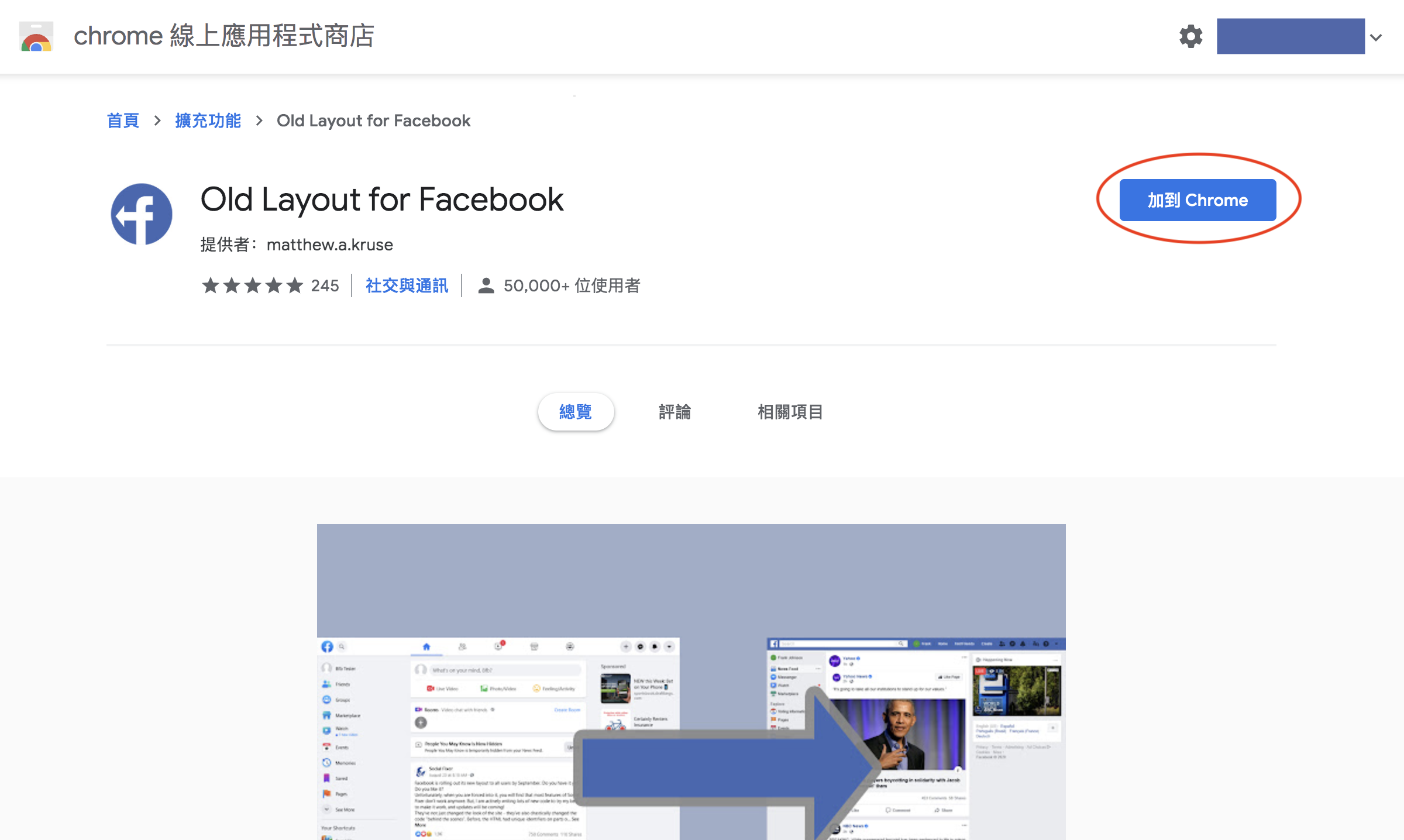 ▼想要換回經典舊版,其實還有別的辦法!超方便的Google Chrome瀏覽器擴充功能「Old Layout for Facebook」,就是一款免費可以將Facebook改回舊版介面的程式,只要簡單幾步驟,就能1秒把你的Facebook改回舊版介面。
