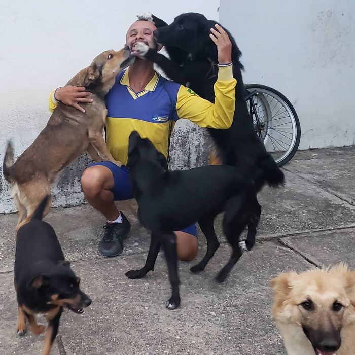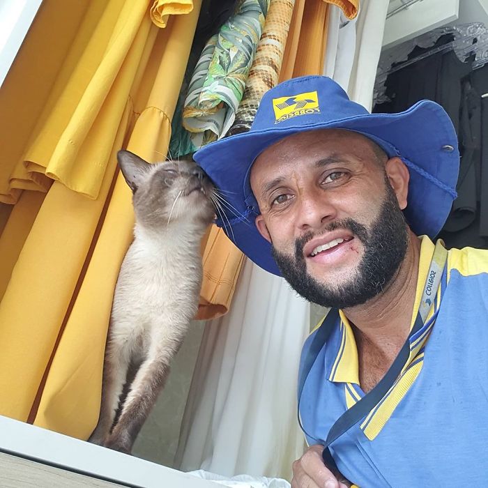 2020年09月28日巴西聖保羅(Sao Paulo)郵遞員Cristiano da Silva Antunes很喜歡小動物,工作時遇到毛孩,他會主動跟牠們交朋友。Cristiano經常在Facebook上分享自己跟毛孩的合照,雖然很多時候郵遞員跟狗狗之間不太友好,但Cristiano不一樣,那些狗狗都非常喜歡他。