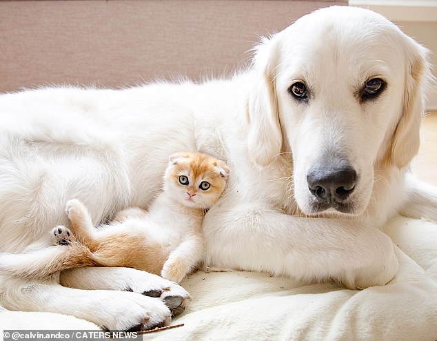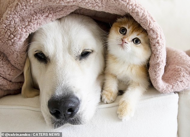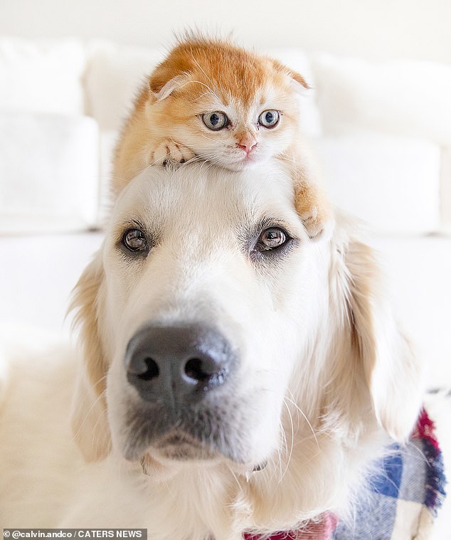 ▼有些貓咪和狗狗不合,見面就吵架,但這個家從來不會有這樣的問題。雖然Calvin不像Samson一樣那麼寵愛貓咪,但也不是看貓咪不順眼的類型。