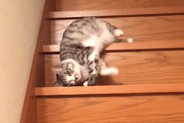 2020年10月01日貓咪果然是液體~日本推主@yuto0812127養了一隻叫「福坤」(ふうくん)的虎斑貓,平時牠看起來跟其他貓咪沒有兩樣,但牠下樓梯的方式卻很特別。福坤會化身「波浪」流下樓,一階一階滑下樓梯。網友們看到後都笑翻了:「真是懶的新境界!」