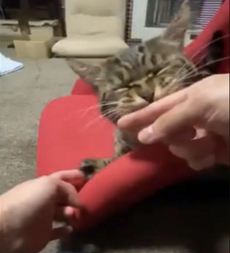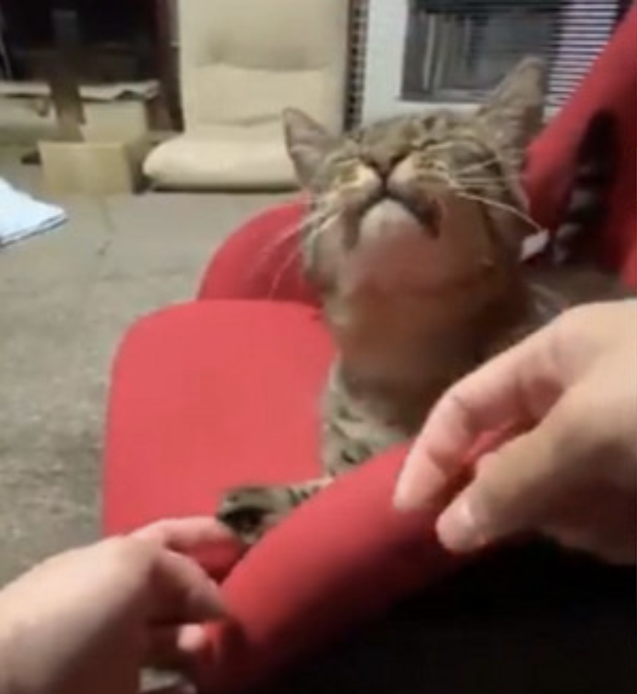 按到神秘開關?摳喵皇肉球「牠立刻猛吸手手」 連動反應笑噴網友:會癢啦