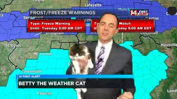 2020年09月29日大家看氣象預報時會關注播報員嗎?其實都在看天氣如何,應該不會特別在意吧~最近美國氣象主播Jeff Lyons突然走紅,這位大叔雖然很呆萌,但平時絕對不會引發話題。這次他能引起那麼多人的關注,還得感謝他的愛貓Betty~