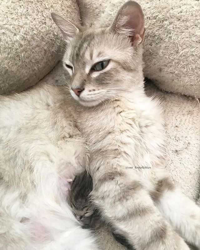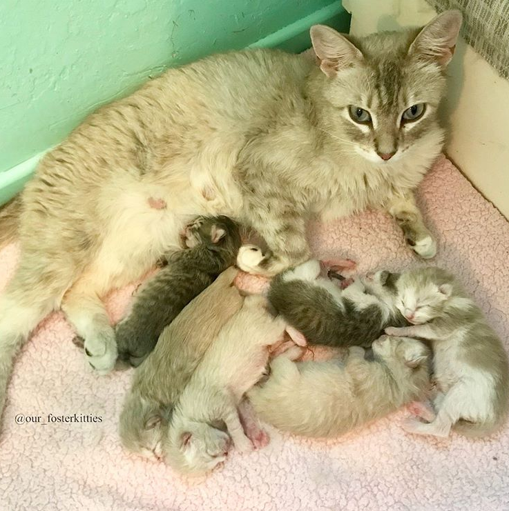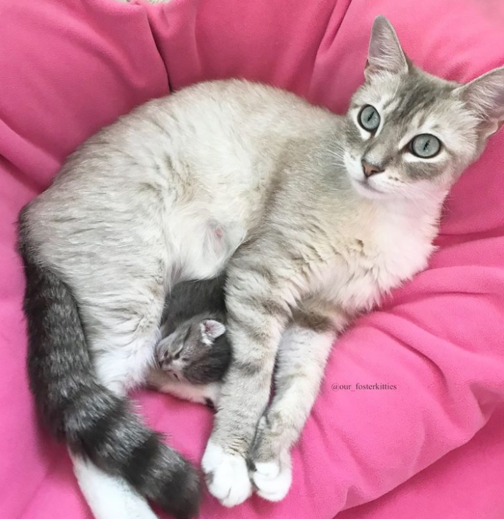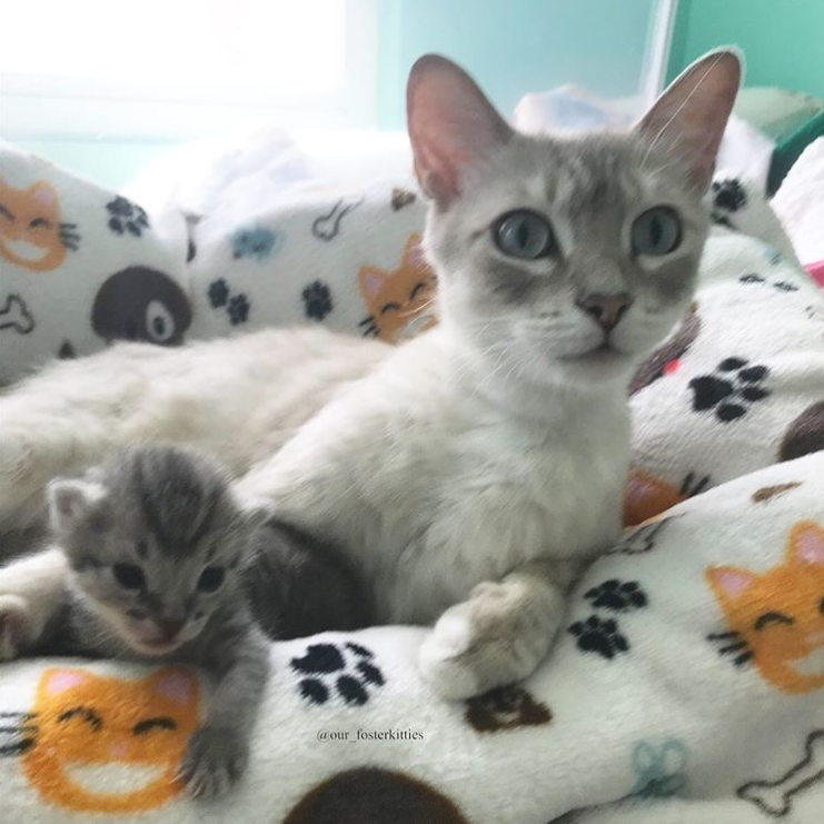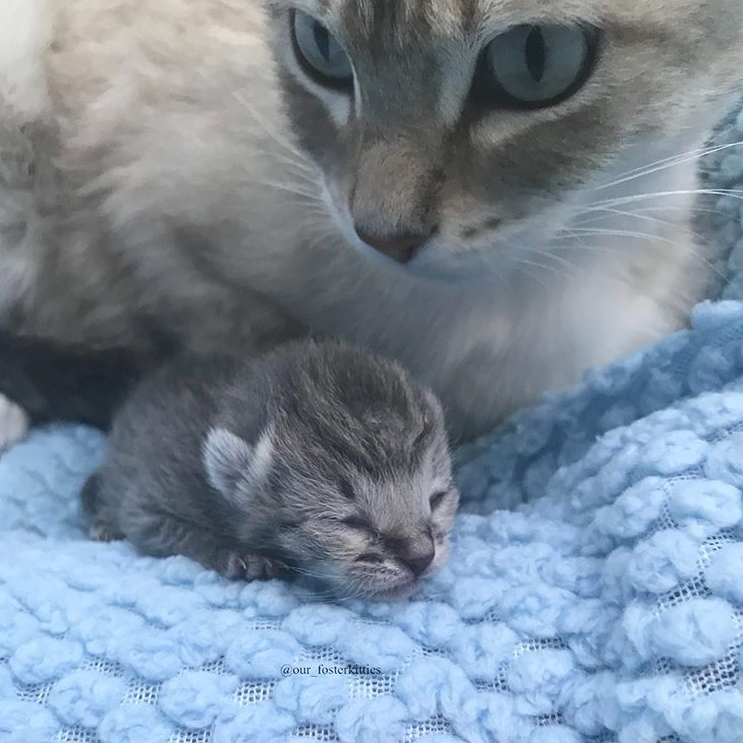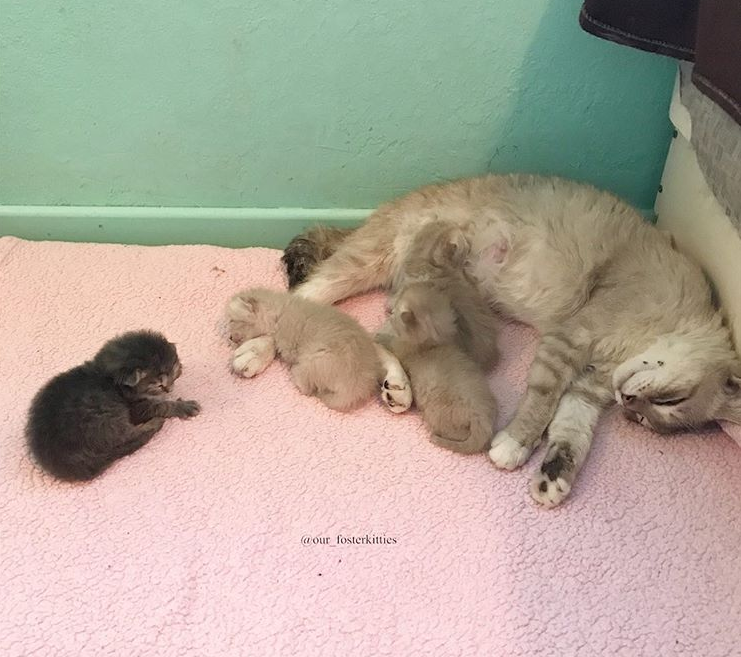 2020年09月30日動物世界的母愛一點也不比人類少!內華達州動物救援組織SPCA救助了一隻叫Misty的母貓。牠懷著身孕,馬上就要當媽媽了。志工Kathy Stankiewicz將牠帶回家中途,幾天後Misty生下一窩小奶貓,但牠因為呼吸道感染病倒,必須接受治療,不能照顧自己的小孩。