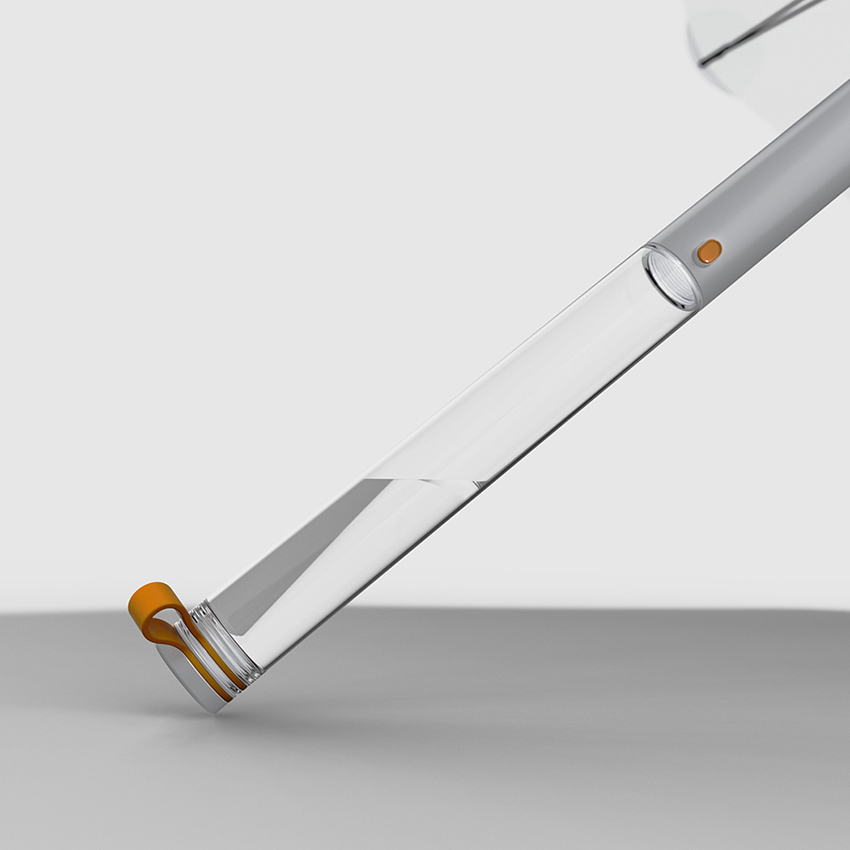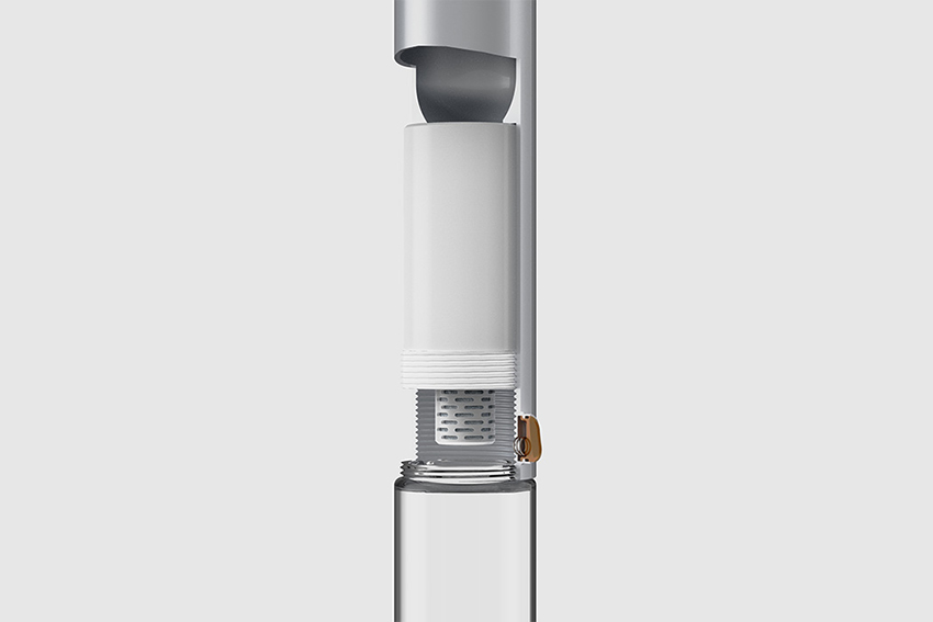 ▼過濾好的水會被蒐集到透明的玻璃傘柄裡,這個容器能裝220毫升水,雖然不多,但對於不易取得水源的地方非常重要。