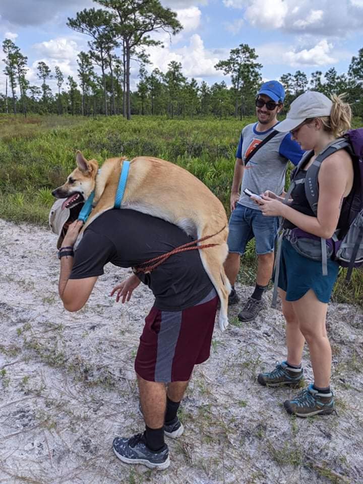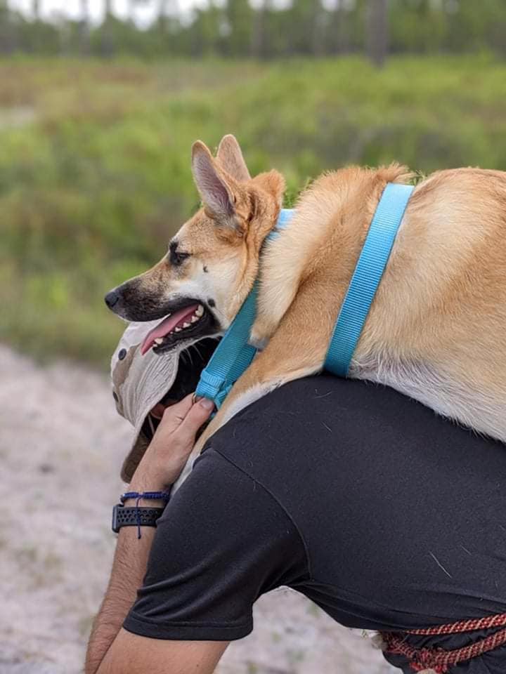 陪主人健行...狗狗累到不想動! 暖爸二話不說「直接揹3公里」 牠滿足咧嘴笑:最愛把拔惹♥