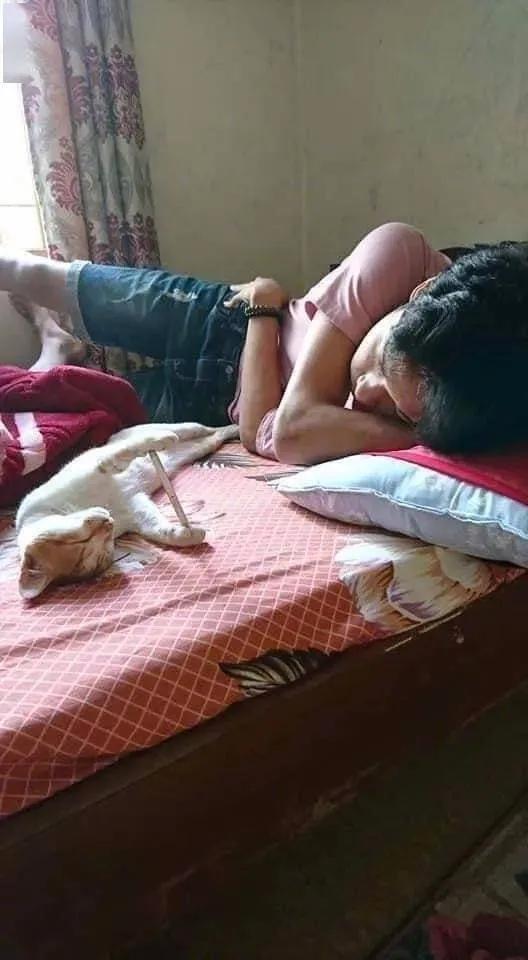 ▼貓咪睡著時被奴才當成手機支架,萬一牠中途醒來該怎麼辦?貓咪可能會說:「愚蠢的人類,你最好快點把手機拿開,否則你承擔不起朕的怒火!」