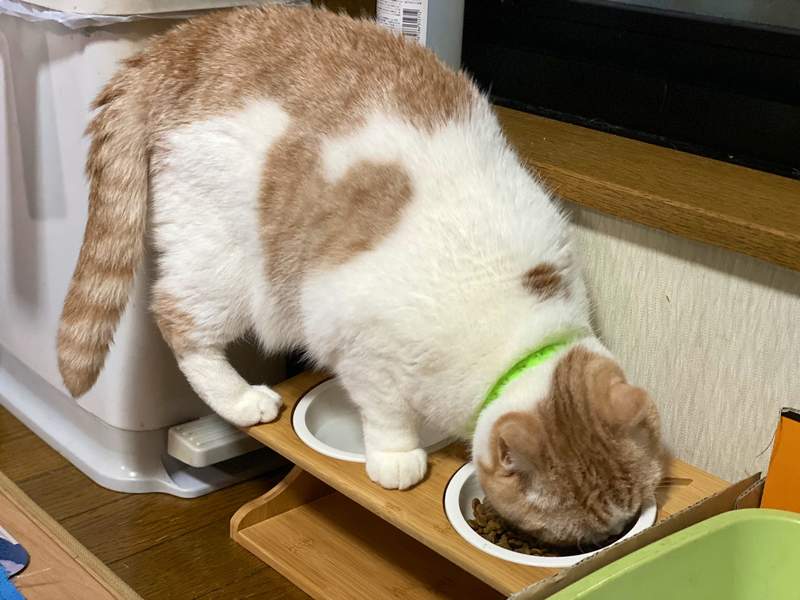 ▼餐桌的設計非常奇妙,好好用起來能起到減輕身體負擔的效果。但貓咪就喜歡低頭吃飯!牠站在飯桌上,頭低低地吃東西。推主看到這一幕只能苦笑說:「很好!」
