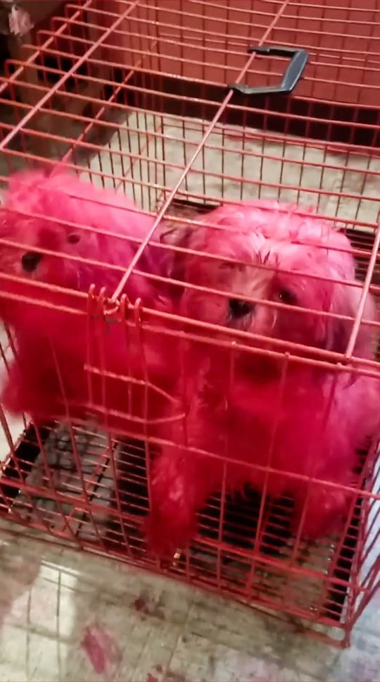 網友們看到這件事後紛紛笑說:「太淘氣了」、「牠們就是想染髮吧」、「早上看到這畫面很恐怖」、「變成粉紅色的小精靈了」、「真時髦」。連狗狗們都對化妝感興趣嗎?這3隻調皮的狗狗真的把主人嚇到啦~