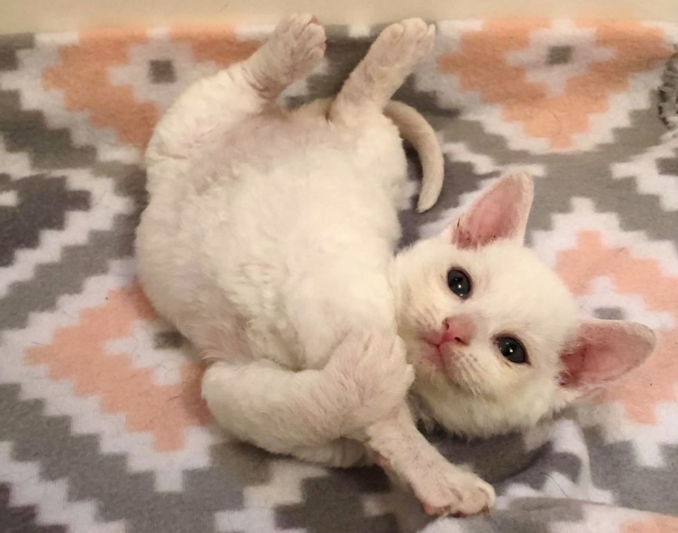 ▼Catsnip Etc分享了貓咪的情況:「因為身體問題,這些貓咪精神很不好,體重也很輕。我們到達現場時,發現了2隻毛毛捲曲的小奶貓。我們沒想到會有這麼特別的浪浪。」