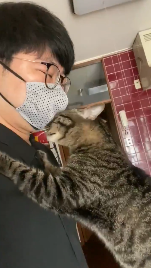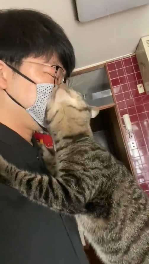 救到極品貓!每天早晨儀式「親親主人」 甜送出門:今天也要努力為我賺罐罐呦~